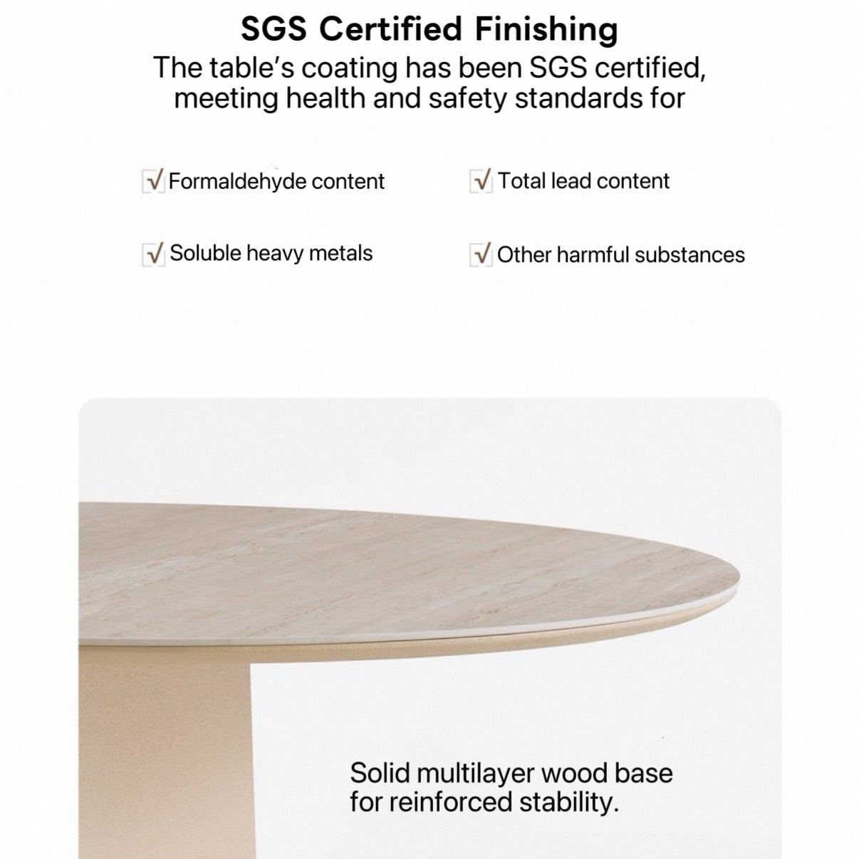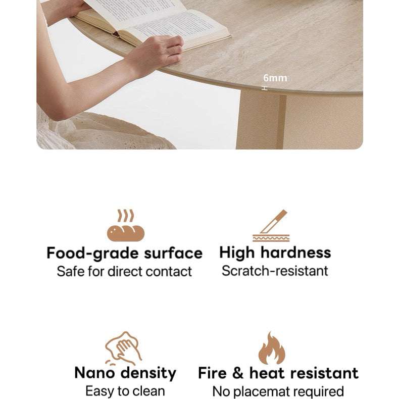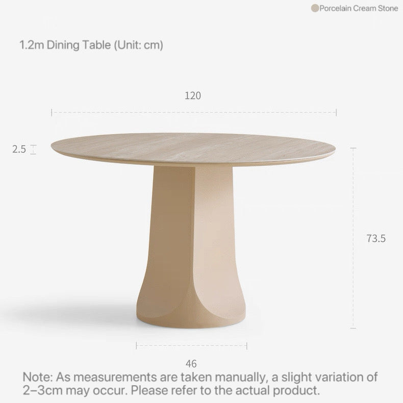 Overall Dimensions: ∘ Diameter 90×H73.5cm ∘ Diameter 100×H73.5cm ∘ Diameter 110×H73.5cm ∘ Diameter 120×H73.5cm Tabletop Thickness: 2.5 cm