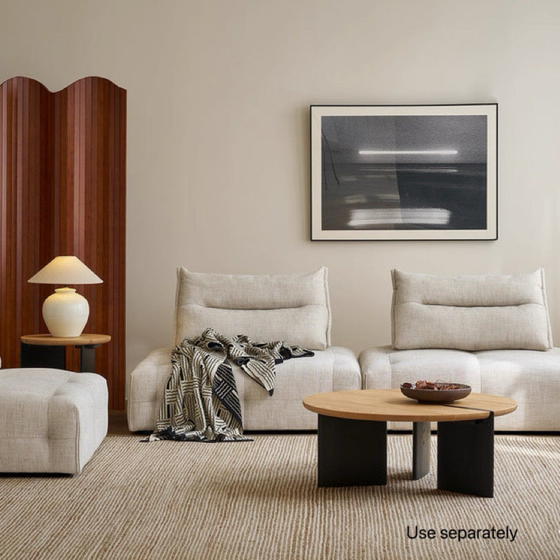 Linton Coffee Table Overall Dimensions: Ø90 × H35 cm Packaging: Fully Assembled, No Installation Required Linton Side Table Overall Dimensions: Ø46 × H45 cm Packaging: Fully Assembled, No Installation Required