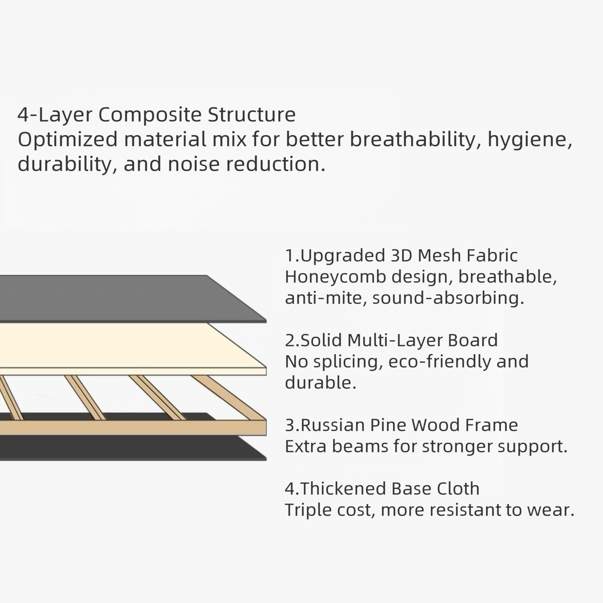 3D Mesh Silent Solid Wood Slats