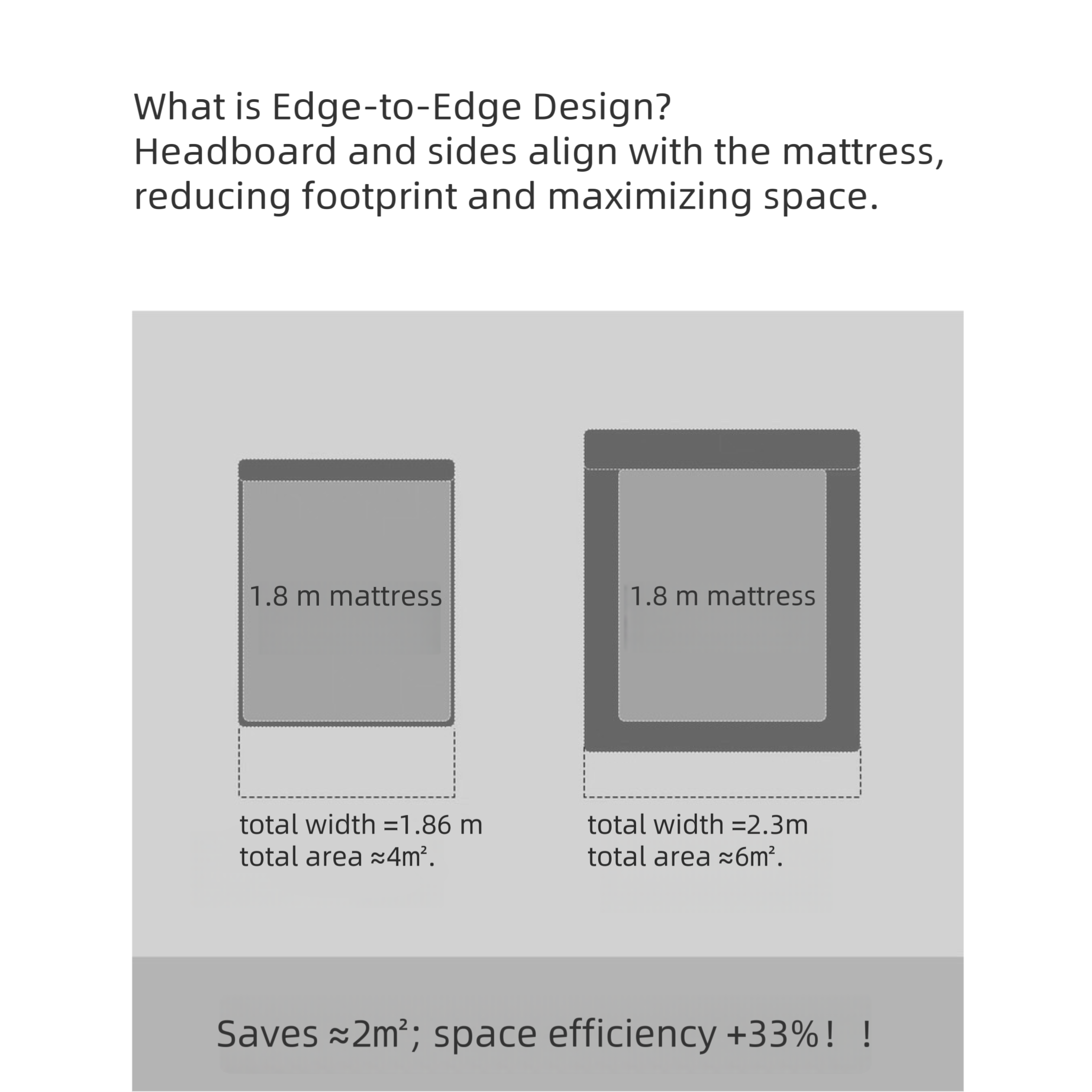 Bed Size (Queen): W152×D191cm Outer Dimension (Queen): W158×D206×H105cm Bed Size (King): W182×D191cm Outer Dimension (King): W188×D206×H105cm Bed Size (150): W150×D200cm Outer Dimension (150): W156×D215×H105cm Bed Size (180): W180×D200cm Outer Dimension (180): W186×D215×H105cm Recommended User: 2 persons